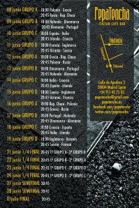 Grazie Mille (C/ Mayor, 31) “está que lo tira” y os ofrece cervezas a 1 euro y bocatas a 2 euros. Además, cuenta con la retransmisión en italiano!!! Ya sabéis, si el comentarista está de nuestra parte, darle ánimo a nuestra selección es más entretenido… Para más alicientes, puede que algún equipo de televisión visite local para grabar la vehemencia de los tifosi, ¿os lo vais a perder?