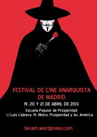 El Festival de cine anarquista de Madrid nace con la idea de dar conocer y ayudar en la difusión de nuevos trabajos y director@s. Será del 19 al 21 de abril en la escuela Popular de La Prospe (C/ Luis Cabrera 19), cuando podamos disfrutar de estas interesantes creaciones.