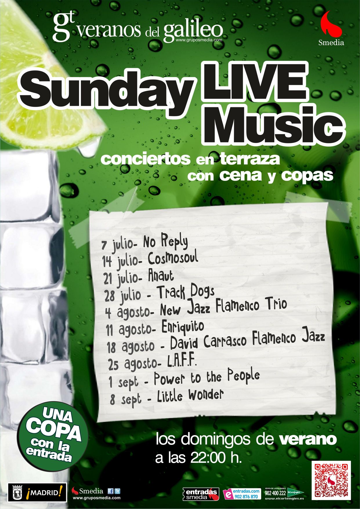 El Teatro Galileo (C/ Galileo, 39) nos invita a pasar las noches de los domingos con cena, copas y música en vivo en su terraza. La entrada incluye una copa!!