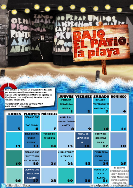 Así definen el proyecto sus organizadoras. Bajo el patio, la playa (C/ Pez, 21) quiere ser un alegre refugio durante este mes de agosto para los que tienen que estudiar, los que tienen que trabajar o simplemente los que no pueden ir de vacaciones…