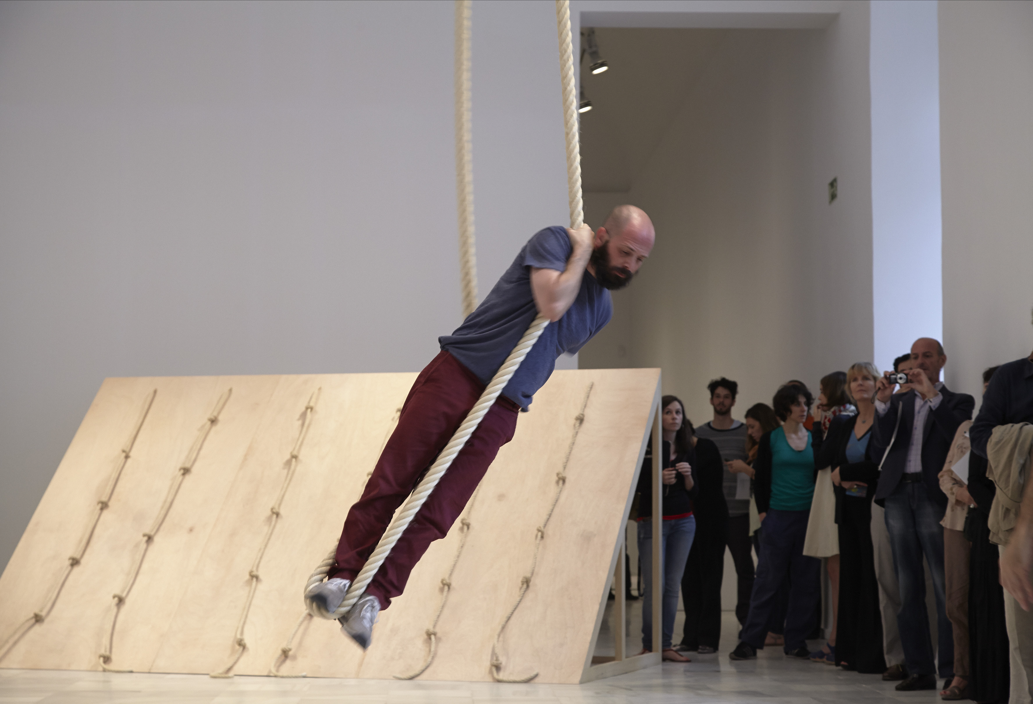 Los híbridos entre escultura y danza, el artista comisario o el trabajo colectivo son algunas de las señas de distinción de ese período. Un ejemplo de todo ello es la serie de “conciertos” de La Monte Young, que se estrena en el estudio loft neyorquino de Yoko Ono. La coreógrafa Simone Forti participa en estos conciertos, inventando un híbrido entre danza y escultura que define como “construcciones de danza”. Cada una de las piezas de danza se representaba en un lugar diferente del espacio de manera que la audiencia se movía de una zona a otra para contemplarlas. Ahora en el Museo Reina Sofía, podemos verlos todos los días, entre las 12 y las 20 horas, en el marco de la exposición.