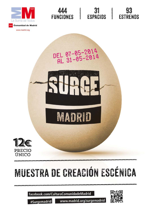Por su parte, Surge Madrid promociona la creación escénica de los espacios alternativos, que conforman un fenómeno único y diferenciador con respecto a otras ciudades españolas y que equivale al ‘Off’ de Nueva York y de Londres.