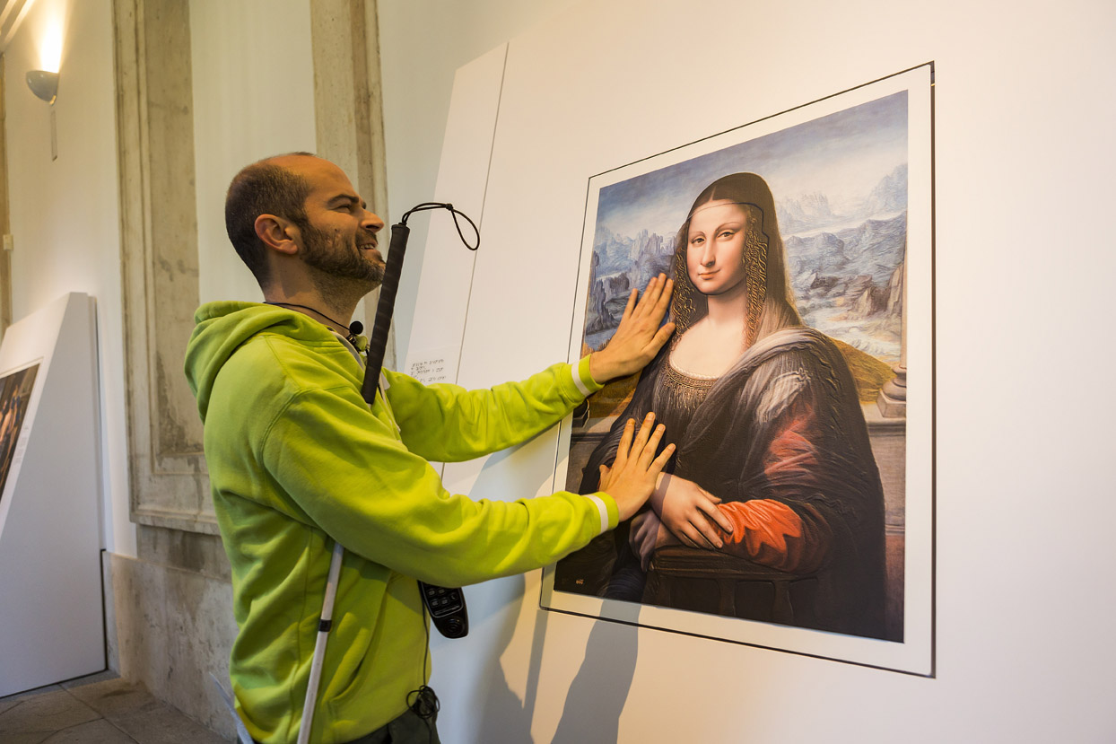 Así se llama la primera iniciativa accesible a personas con discapacidad visual de la pinacoteca, que consta de 6 imágenes en relieve pertenecientes a diferentes géneros y estilos artísticos (la pintura religiosa, la mitología, la escena costumbrista, el retrato y la naturaleza muerta). Componen la pequeña exposición: Noli me tangere de Correggio, La fragua de Vulcano de Velázquez, El quitasol de Goya, La Gioconda del Taller de Leonardo da Vinci, El caballero de la mano en el pecho del Greco y Bodegón con alcachofas, flores y recipientes de vidrio de Van der Hamen.