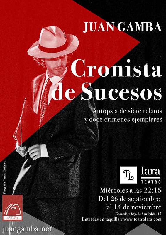 3. Con la llegada del otoño, la agenda teatral vuelve a pleno ritmo. Entre los estrenos más interesantes del momento, te destacamos Cronista de sucesos, hasta el 14 de noviembre en el Teatro Lara. En este montaje, Juan Gamba hace un repaso de 7 casos de crónica negra, metiéndose en la piel de un investigador y desplegándose en cerca de 30 personajes.