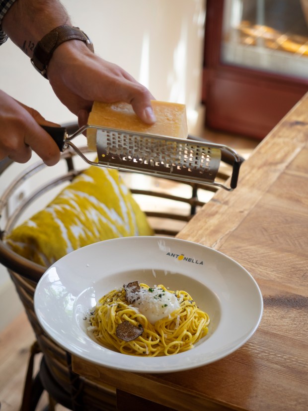 De los mismos propietarios de Fellina y Giulietta, llega Antonella. Acogedor, lleno de luz y color amarillo limón, mérito de la interiorista Marta Banús, nos traslada a una casa de campo en La Toscana, con con sus limoneros, su jardín de hierbas aromáticas y sus bodegones gigantes con peperoncino, aglio e pomodoro secco. No dejes de probar los Spaghetti alla carbonara terminados en mesa, los Spaghetti al tartufo, Parmigiano e uovo poche, las Melanzane parmigiana, la Pizza napoletana fritta; el Fazzoletto ripieno di zucca, biscotto Amaretto e Parmigano, los risottos o el Tiramisú, con opciones igualmente apetecibles para niños, vegetarianos y celiacos.