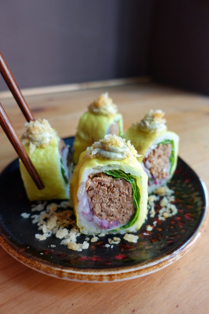 Así desde esta peculiar laboratorio salen creaciones como el roll Paris, que lleva foie mi-cuit y manzana horneada y va envuelto en crujiente de panko con reducción de Pedro Ximénez y flor de sal o el Buenos Aires, con carne de ternera flambeada con romero, rúcula y cebolla morada, envuelto en panko y con salsa chimichurri. También, y para abrir boca, tienen baos, edamame… Y para terminar con un bocado dulce, te sugerimos pedir sus Mochis de Oreo o de Frambuesa.