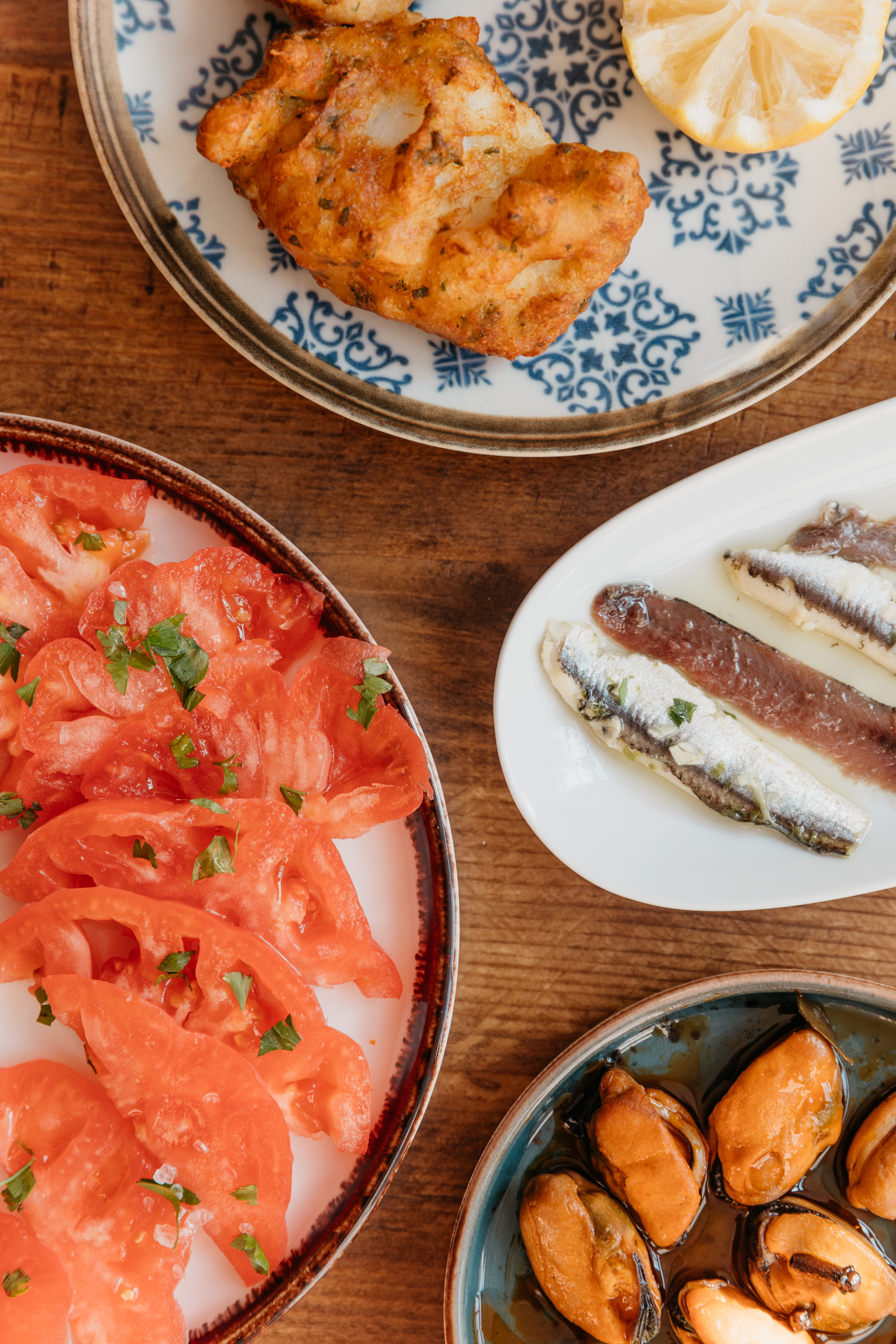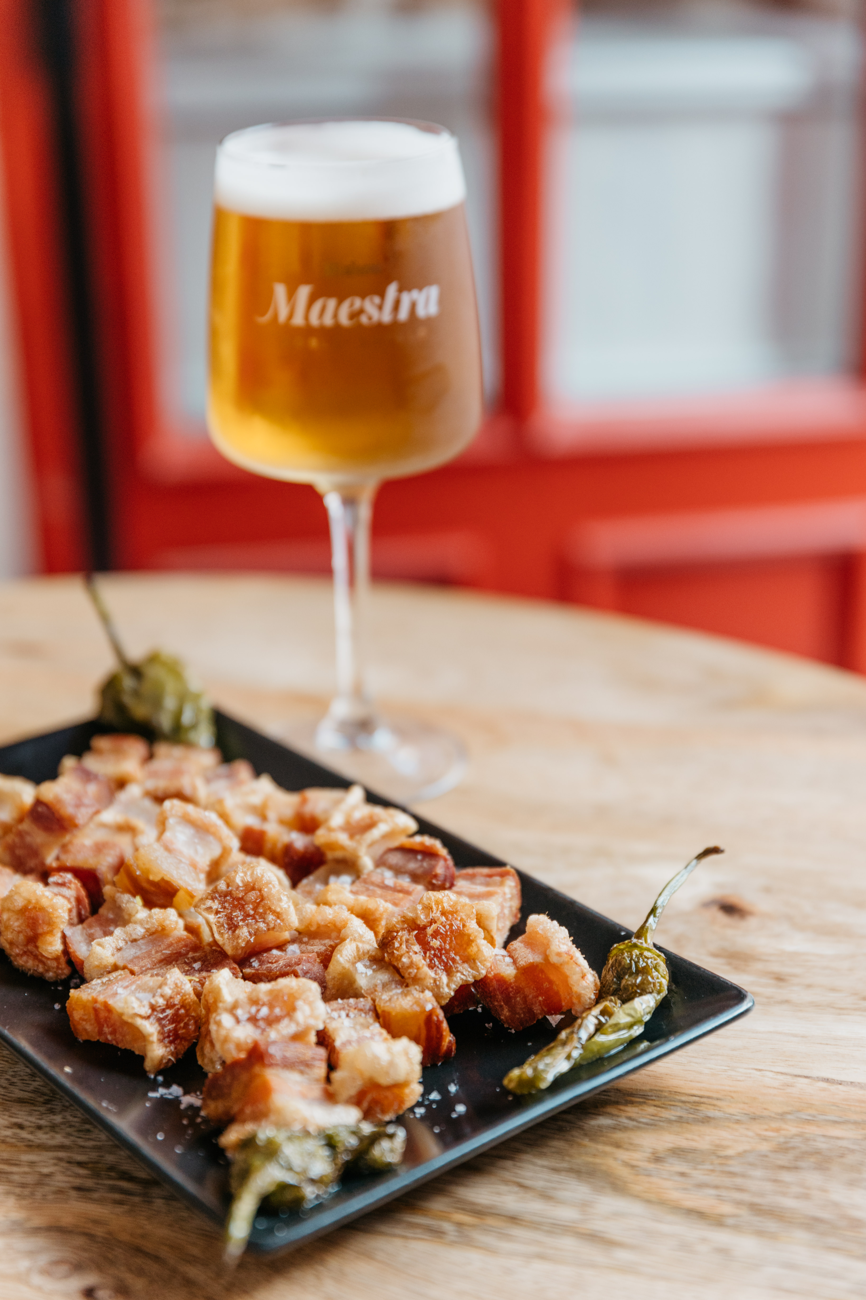 En su propuesta non-stop (la cocina abre durante todo el día) encontrarás sus cremosas croquetas caseras de jamón ibérico, setas y trufa, bacalao al pil pil y queso azul; pavías de bacalao, así como gildas, torreznos de Soria, oreja a la plancha, o una tiernísima sepia al estilo del abuelo Jesús, entre otros. En el apartado de postres, sobresalen la tarta de queso horneada, cremosa en el centro y caramelizada por encima y el arroz con leche.