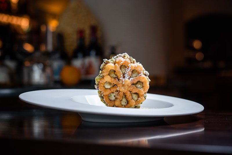 La Arancina Oziosa es sin duda uno de los platos con el que reflejan este concepto. Se trata de una ‘croqueta’ de arroz típica siciliana elaborada con bisque de gamba roja y que revela en su interior un corazón cremoso de burrata, con un toque de menta y limón sobre una crema de azafrán.