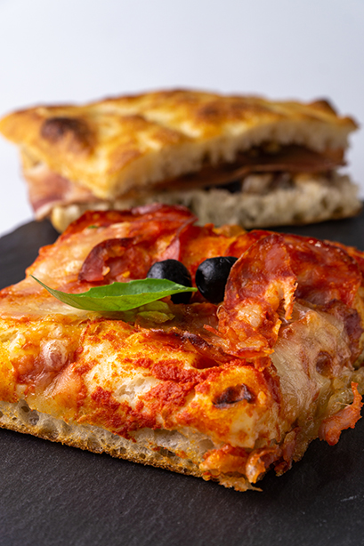 Tal y como sugiere su nombre, el producto principal de Pizzico es la pizza napolitana, cocida en horno de leña, con ingredientes italianos y base de masa madre de larga fermentación muy ligera. La carta cuenta con un total de nueve pizzas (desde 8,90 euros), los calzones, pizzas al trancio (al corte), y ocho tipos de focaccia y puccias, bocadillos típicos de la región de Apulia en cuya elaboración se emplea una masa madre ligera. Y en el apartado de postres, destaca el de nocciola bio sin aceite de palma, del proveedor Rigoni Di Asiago, en la región alpina cerca de la ciudad de Asiago, provincia de Vicenza.