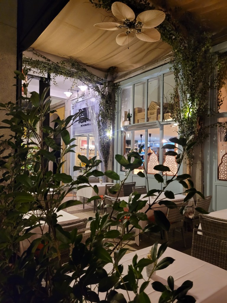 Lo primero que nos llamó la atención de Poncio es su pórtico. Nos parece un puntazo poder comer o cenar debajo de él, incluso en otoño, ya que se está bastante resguardaditos. Nos recordó a los cascos antiguos de algunas ciudades italianas, donde es bastante habitual tomar algo debajo de un pórtico. Y además, está al lado del Retiro, mejor ubicación imposible.
