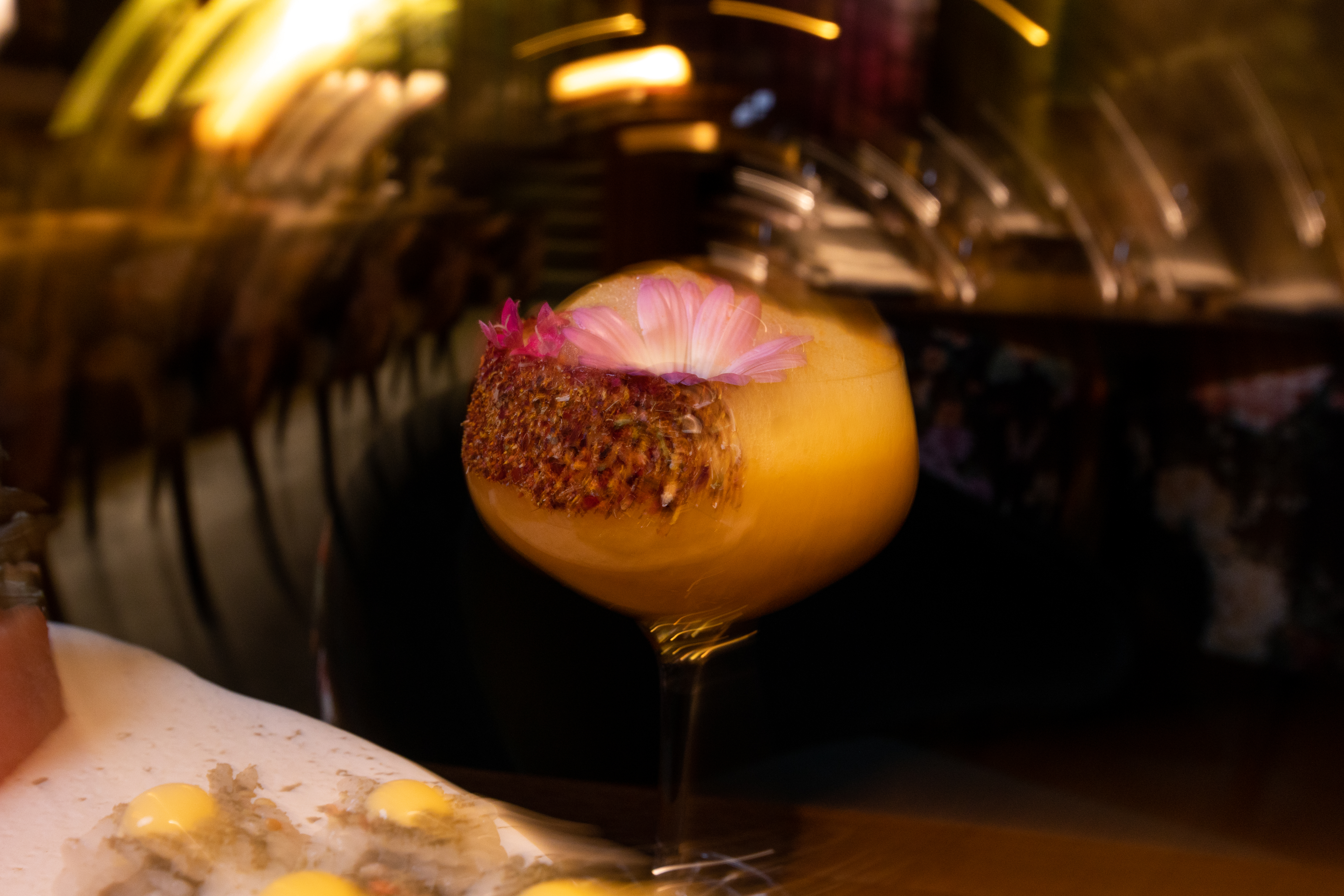 La velada puede alargarse con uno de sus cócteles de autor (aptos también para maridar con el banquete) y nosalegramos de que contemplen en la carta líquida algunas opciones sin alcohol; así como con sesiones de DJ en directo las noches de jueves, viernes y sábados. Y es que el local cuenta, al fondo, hasta con cabina de DJ. Decorado con elegancia moderna (luces tenues, tapicerías de terciopelo en tonos granate y verde oscuro, grandes lámparas con tulipas de tela y flecos) y cierto ‘rollo’ de lujo exótico (panteras salvajes e insectos dorados, vegetación, etc).