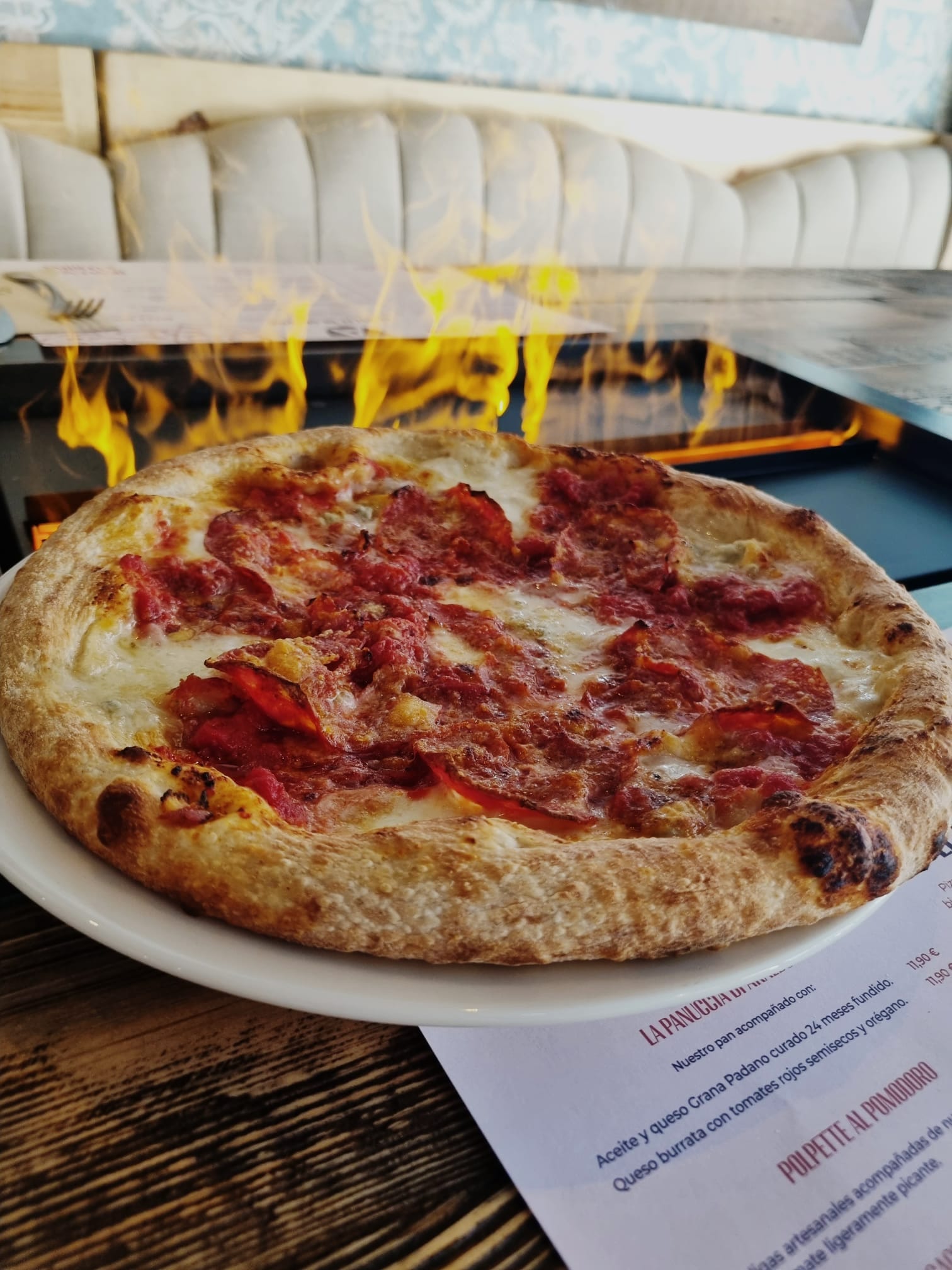 Con salsa de tomate normal o de tomate confitado San Marzano con queso Monte Veronese o mozzarella fiordilatte, un sinfín de toppings con denominación de origen, con aceite de oliva virgen extra (también en la masa)… Están todas buenísimas. ¿Nuestra recomendación? La sabrosa: salsa de tomate, queso mozzarella fiordilatte, panceta, salami picante y queso gorgonzola.