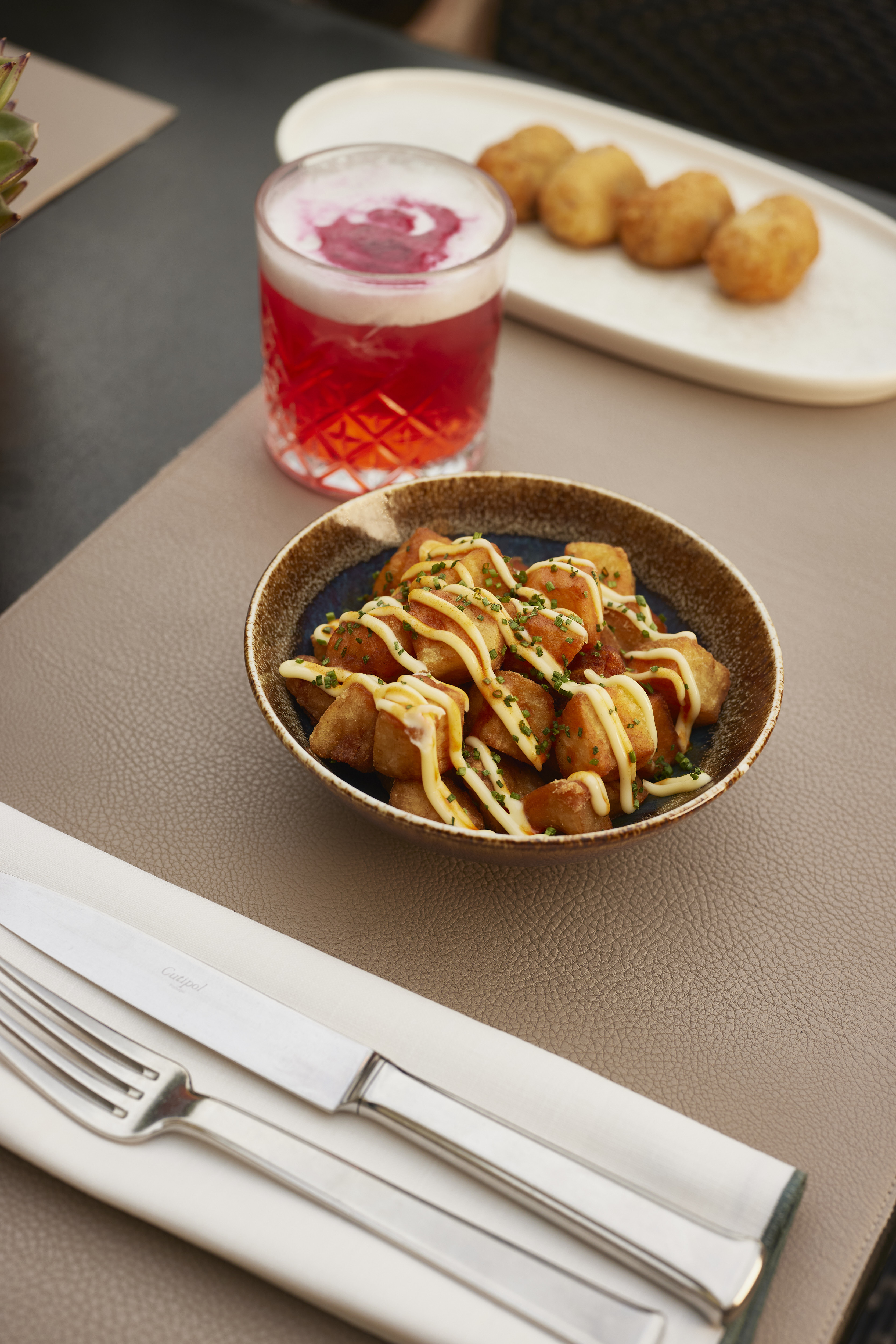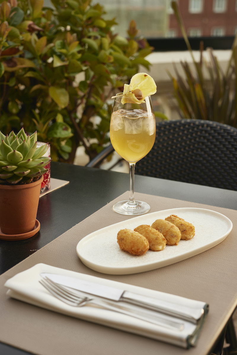 Para maridar nos proponen combinados tan arraigados y modernos a la vez, como el Chulapo (vermut infusionado con Pedro Ximénez y espuma de tónica), La Movida (una versión de la Paloma con tequila, cordial de pimiento rojo asado y pomelo, licor de chocolate blanco, ancho reyes y soda) o Retiro (sin alcohol, con Seedlip Garden, manzana, cordial de menta y kombucha de lima).