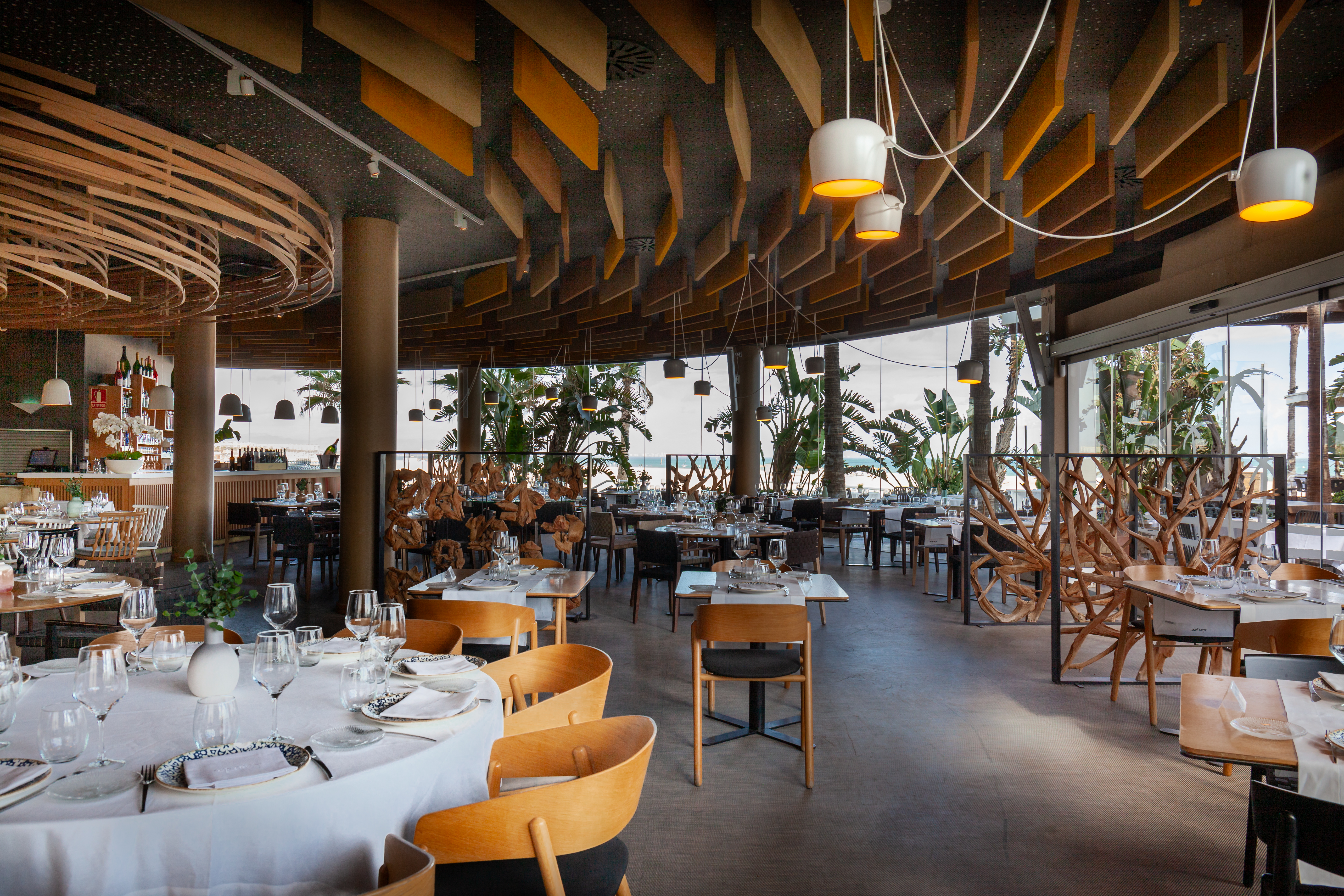 Sus puntos fuertes: producto de temporada procedente de proveedores locales, recetas reconocible con un toque de modernidad, mucho sabor a mar y una decoración muy cuidada que invita al relax y al disfrute en la que destacan un olivo y una lámpara de madera de vareta firmada por el artista fallero Manolo García. Con forma de medusa, está realizada con este material flexible, que habitualmente se emplea en las fallas. En definitiva, una propuesta elegante y mediterránea de calidad, con el arroz y la cocina de siempre como marca de la casa.