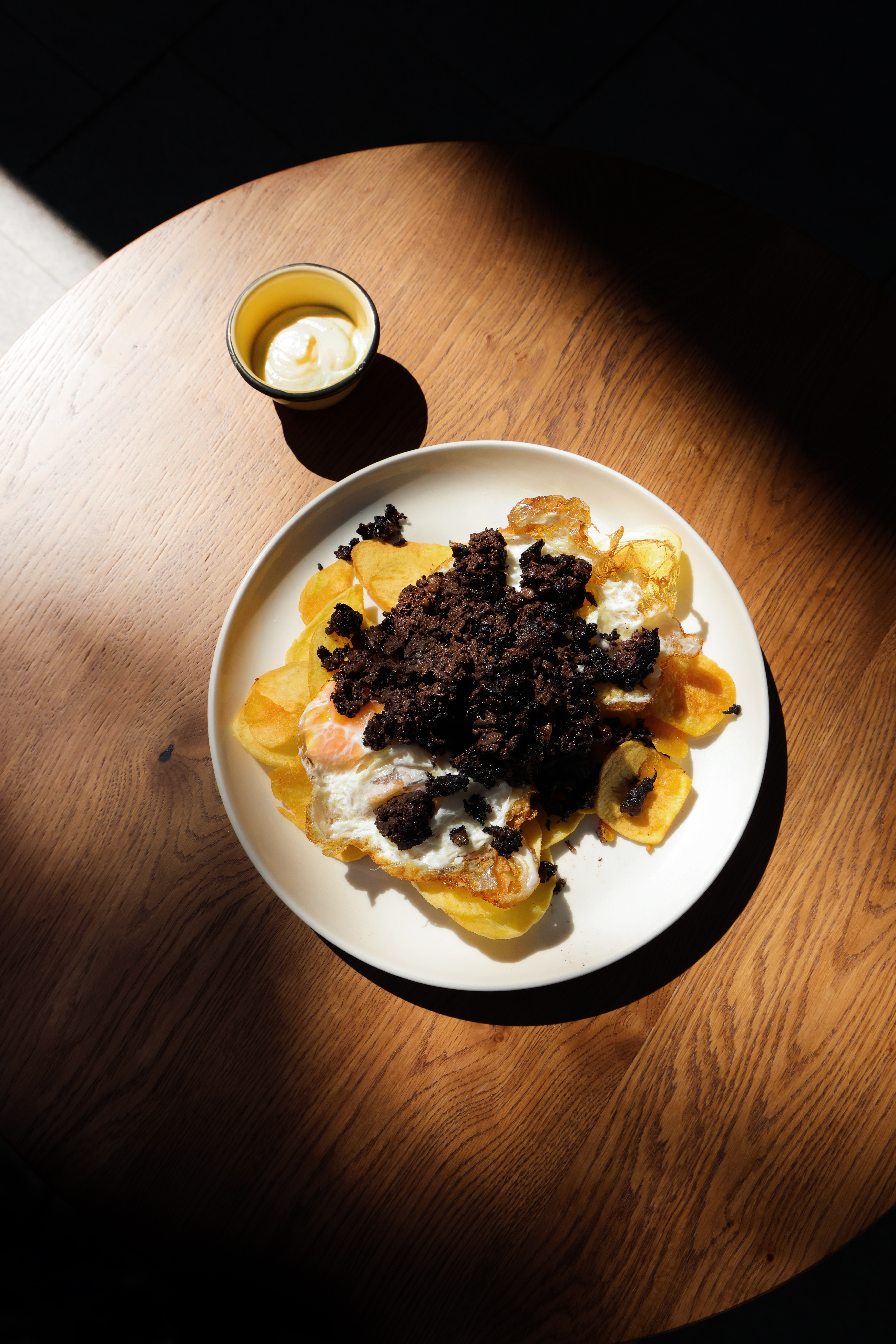 Entre sus imprescindibles reinan los huevos “El Desgraciao” (huevos rotos con patatas, morcilla y una alioli casera que sirven aparte), el Talo de oreja crujiente (muy delicado y apto para quienes no suelen comer casquería) o el Montadito de steak tartar en milhoja de patata crujiente y parmesano. En el apartado de postres destacan el pastel vasco con helado de mantecado o El Buen chocolate.