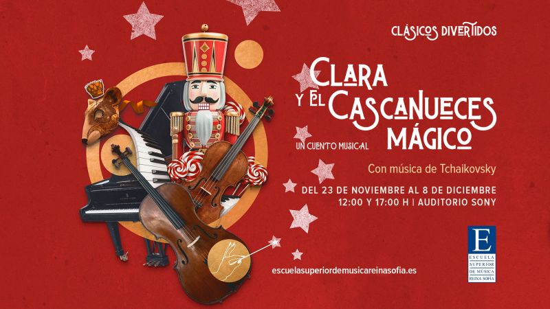 Dentro del ciclo de conciertos Clásicos Divertidos de la Escuela Superior de Música Reina Sofía, que pretender acercar a los más pequeños las grandes obras de la música clásica, se presenta ‘Clara y el Cascanueces Mágico’, una producción propia de la célebre creación de Tchaikovski, adaptada para niños de 4 a 10 años, que estará en cartelera desde el 23 de noviembre hasta el próximo 8 de diciembre.