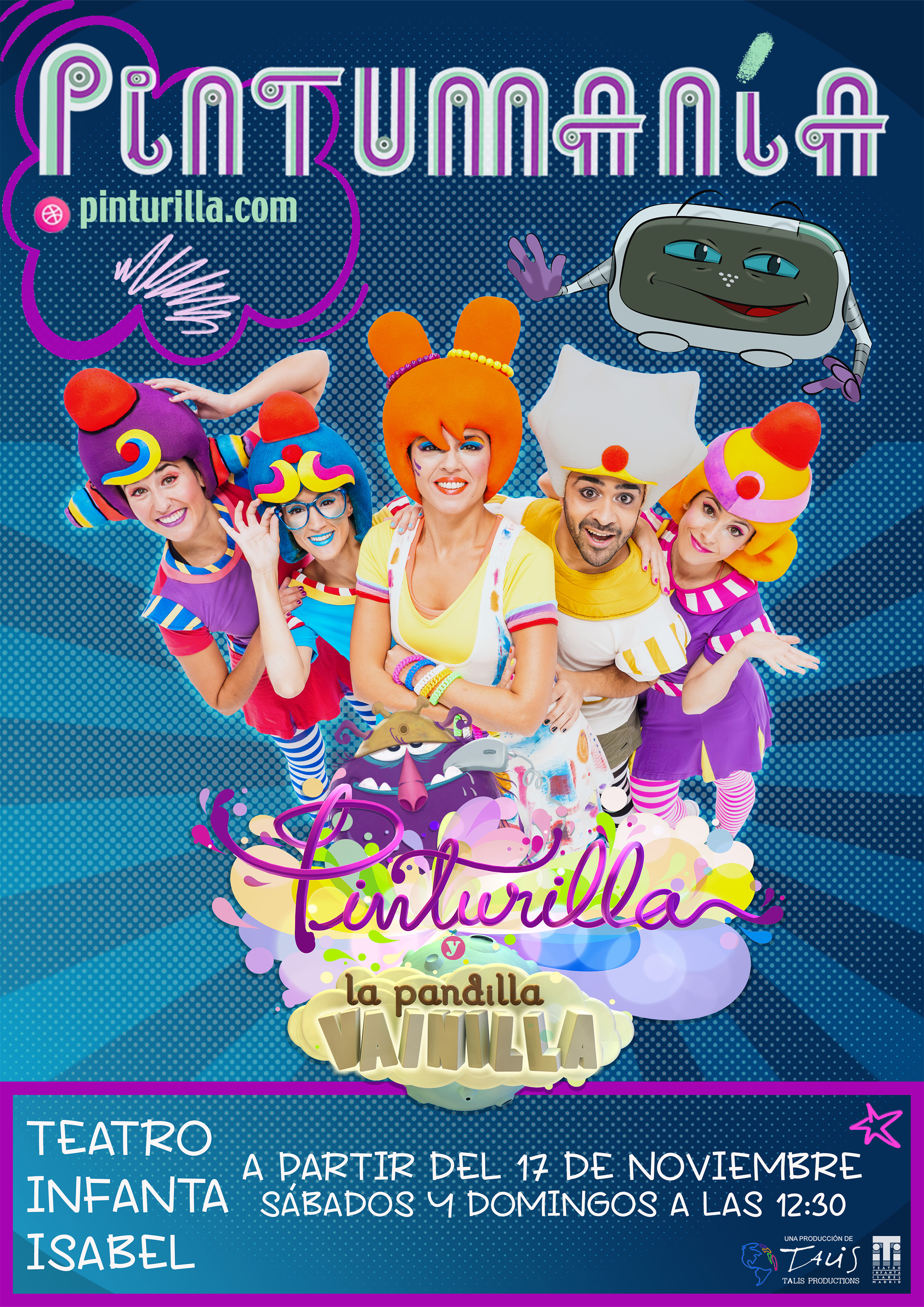 Hasta el próximo 5 de enero, ‘Pinturilla y la Pandilla Vainilla’, la banda musical dirigida al público infantil se subirá todos los sábados y domingos por la mañana al escenario de este teatro para presentarnos su nuevo trabajo ‘Pintumanía’.