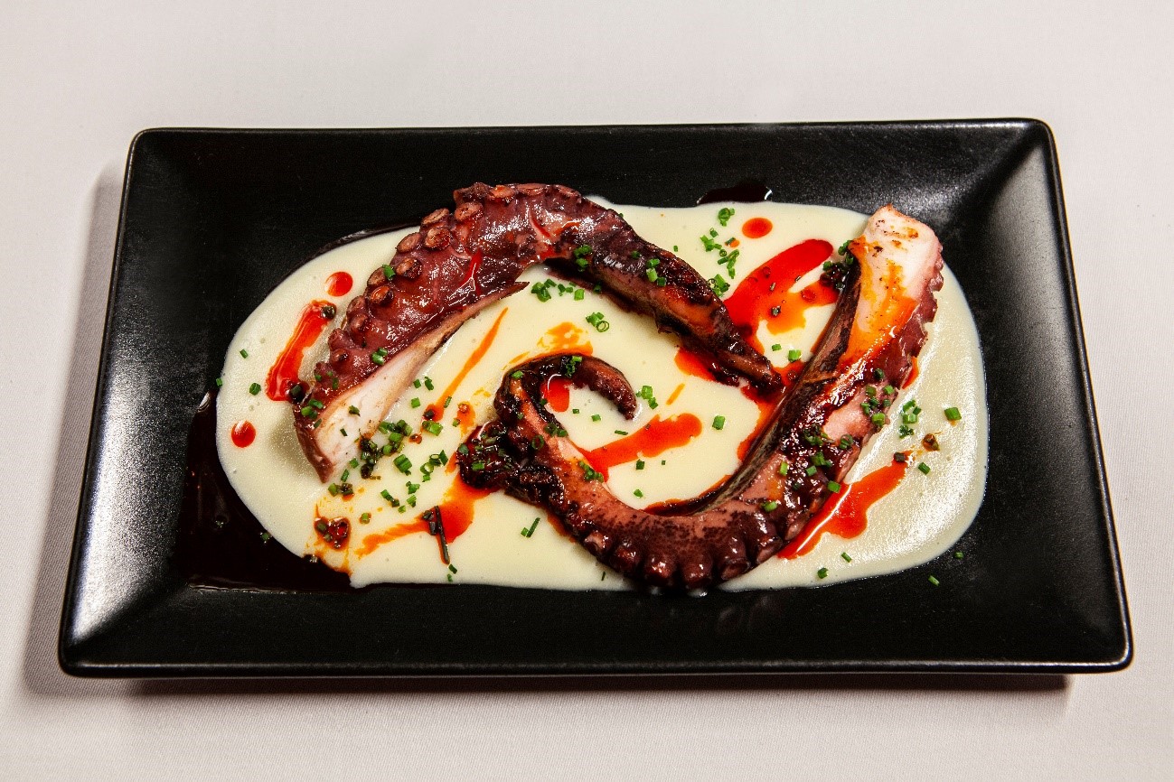 Empieza con un delicado y fresco gazpacho de frutos rojos y unas croquetas de chipirón cremosas. Siguen platos con alma, como el pulpo a la brasa con pimentón de la Vera o los irresistibles huevos cabreados con salsa de ibérico y un toque picante. Los principales van del mar a la dehesa: pez mantequilla con lima o solomillo de ibérico con Oporto, hierbabuena y apionabo. Y para terminar, ofrecen la tarta de queso semitemplada o el refrescante helado de mango.