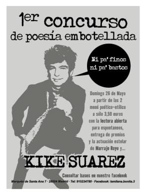 El día 26 de mayo La Milana Bonita (C/ Marqués de Santa Ana, 7) organiza su I concurso de poesía embotellada. Y estáis invitad@s tod@s a participar. Las únicas limitaciones tienen a que ver… Sigue leyendo